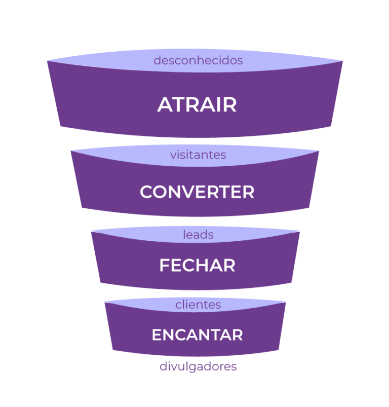 Chama-se funil exatamente por que no topo dele existem muitas pessoas, que serão filtradas até chegaram ao fundo do funil prontas para serem convertidas em seus clientes.